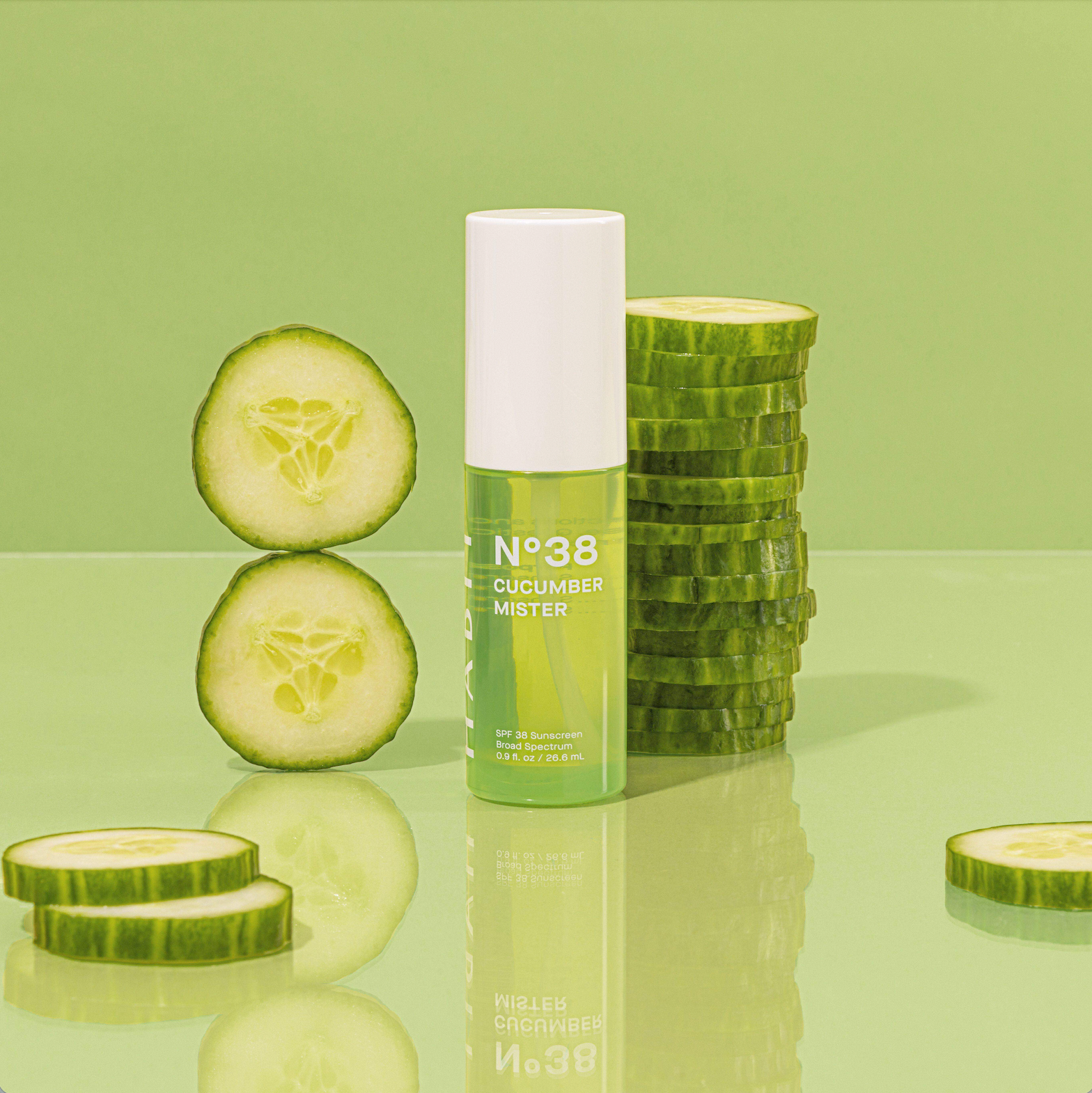 cue, Cucumber. introducing N°38, HABIT's second-ever SPF product: a refreshing cucumber SPF mist. pamper with Cucumber + protect with SPF.